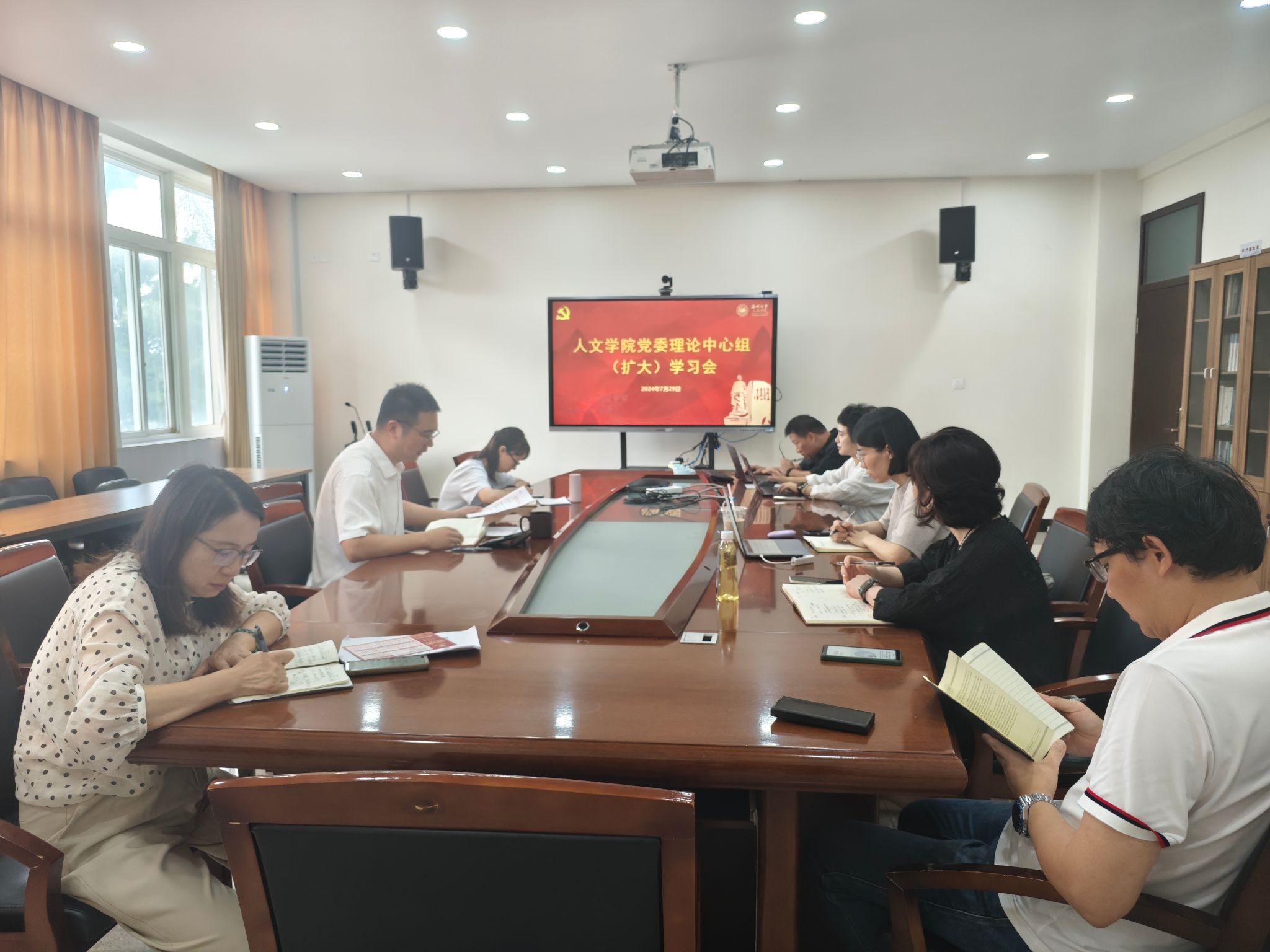 学院全体班子成员、各系室(中心)党政负责人和各师生党支部书记线上线下同步参加学习会。