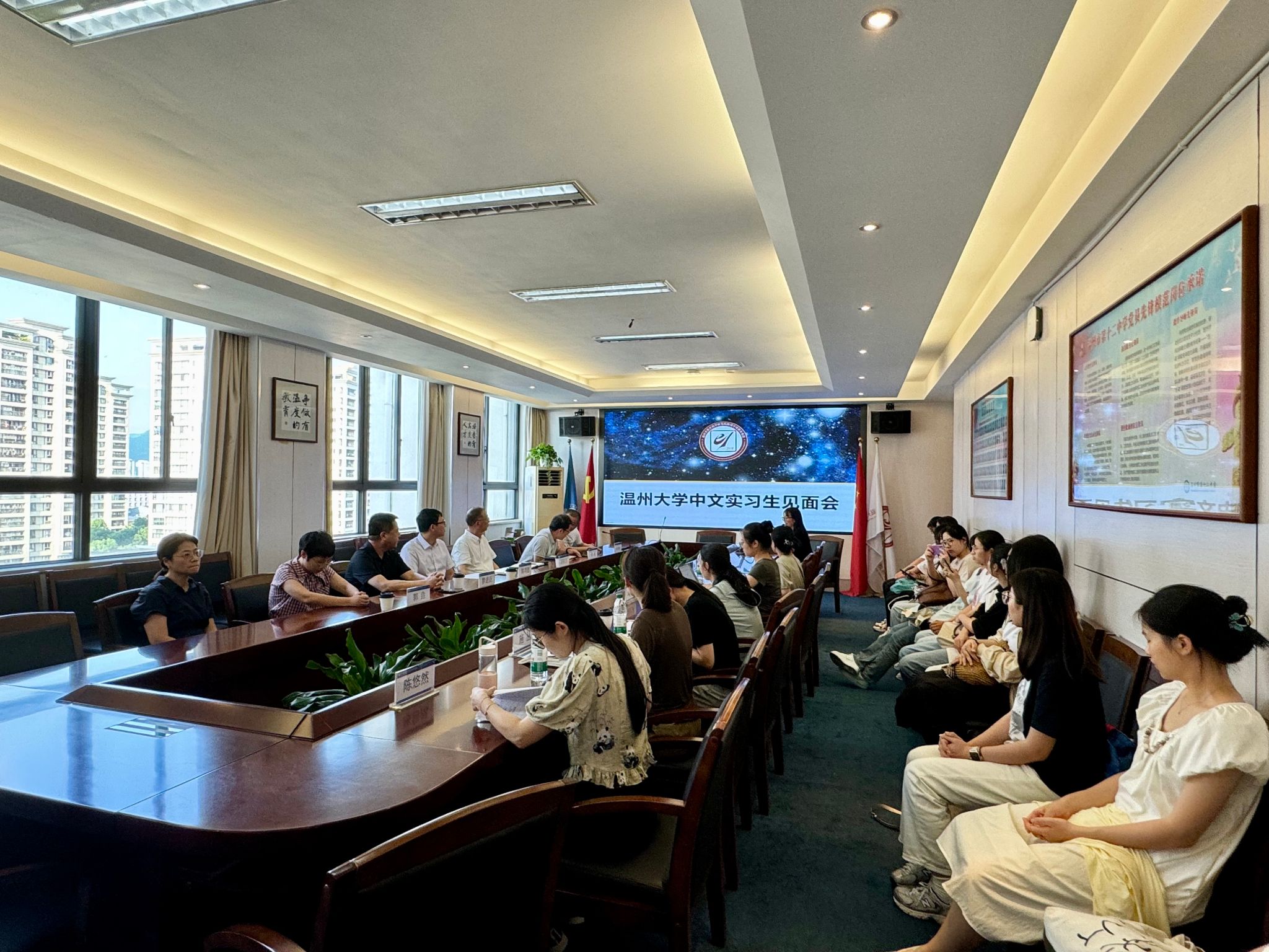 2024年9月9日下午16:00,温州市教育教学研究院附属学校教育集团学院路分校举行了德赢ac米兰官方合作vwin21级汉语言文学(师范)专业教育实习见面会。会议上,集团校副校长张政、副校长邓权忠、八年级主任陈春棠、德赢ac米兰官方合作vwin副院长陈鸿超、德赢ac米兰官方合作vwin实习指导老师罗进近、郭垚,6位集团校指导老师,以及14位实习生共同参会,会议由集团校陈媛老师主持。