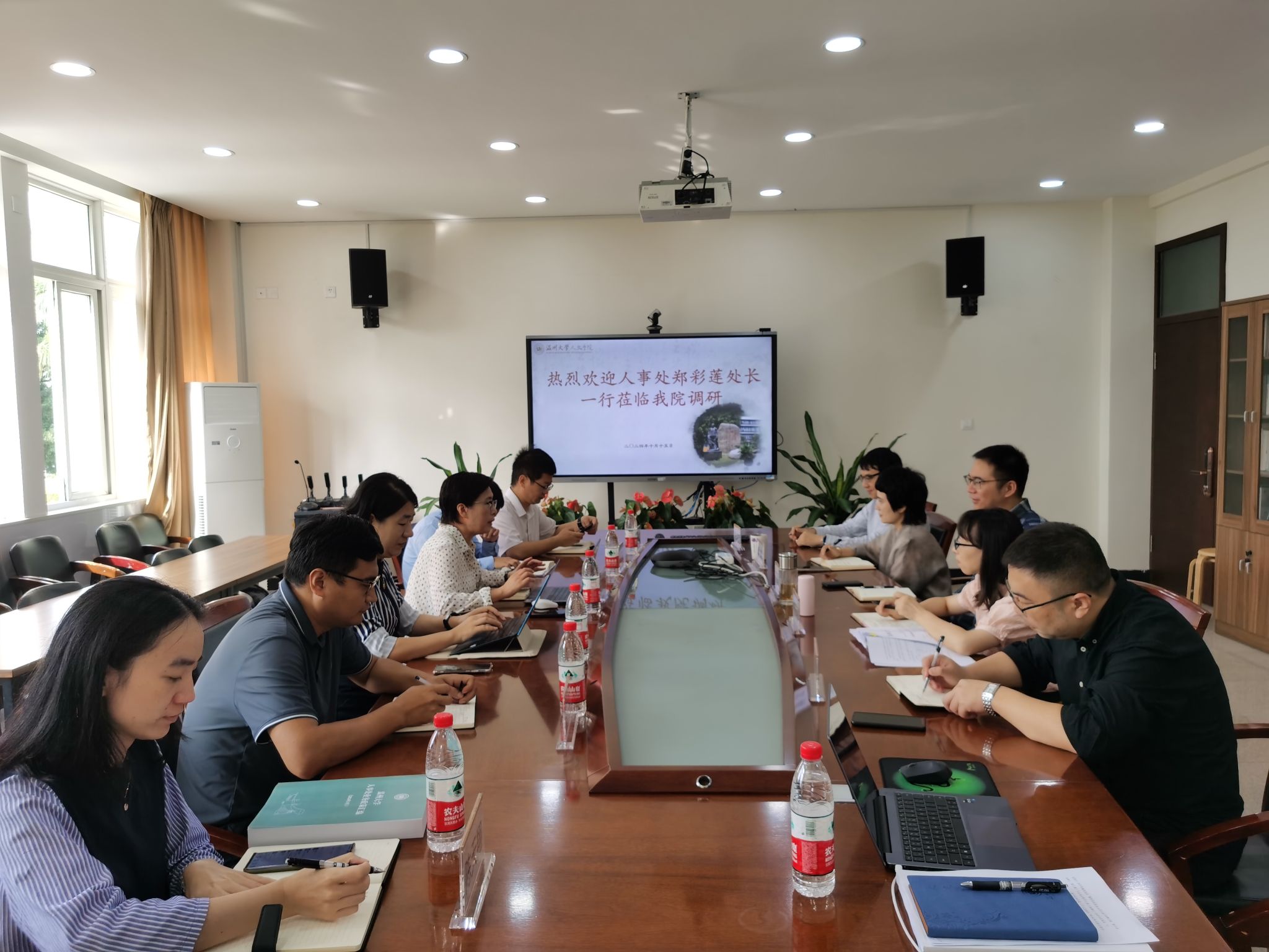 为进一步提升学校人事管理服务工作,10月15日上午,人事处郑彩莲处长率副处长陈锡安、赵燕、胡杰等一行莅临德赢官网交流调研工作,学院班子全体成员参加交流会。