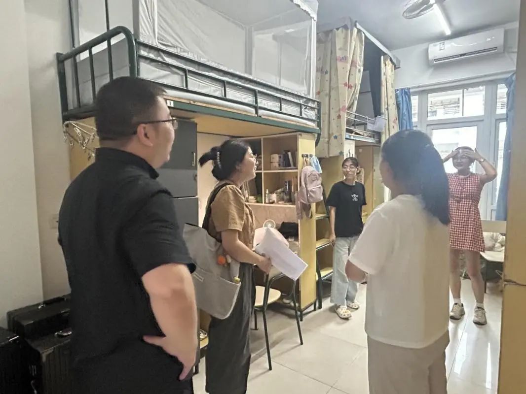 为全面了解新生入学情况、帮助新生尽快适应大学生活,德赢ac米兰官方合作vwin党委书记、副院长江秀景,副院长陈源源,院党委副书记黄玮,副院长张真,副院长陈鸿超,院长助理鲍良兵,2024级各班班主任及全体辅导员、班助代表深入2024级新生寝室看望慰问学生,传递人文关怀。