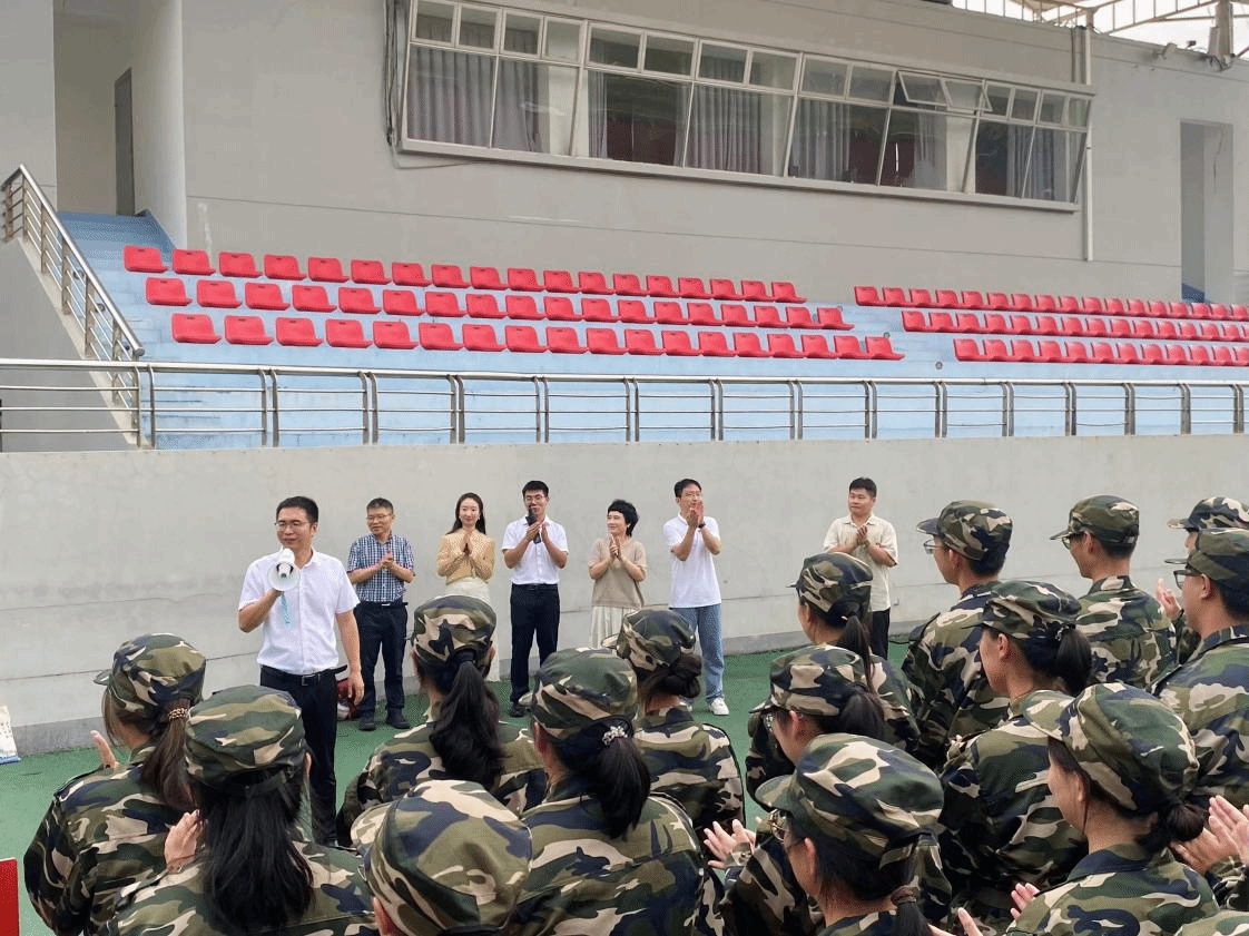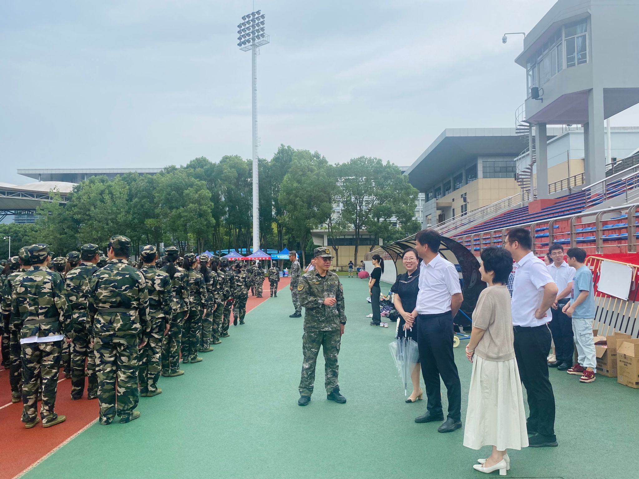 在慰问的过程中,校党委副书记庄兴忠老师、学工部部长姜海燕老师也来到了训练场地给同学们加油打气,庄兴忠老师向承训的教官们表示衷心的感谢和崇高的敬意,同时向同学们表示亲切的问候,对同学们于夏日炎炎中仍能坚持军训,吃苦耐劳表示慰问与鼓励。