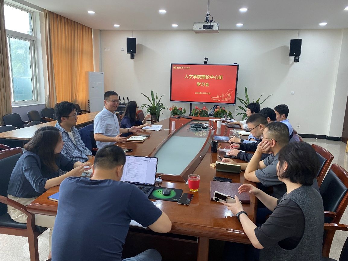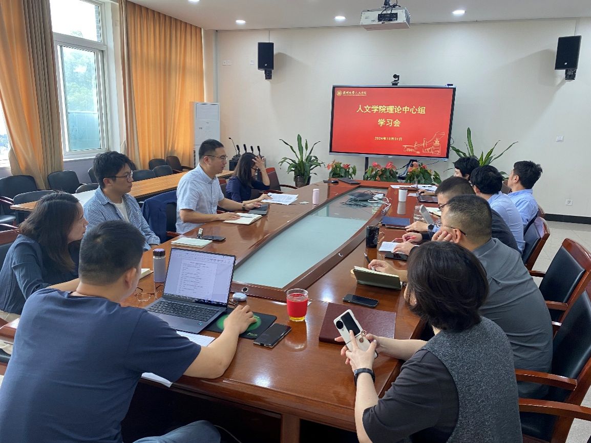 10月21日上午,德赢ac米兰官方合作vwin党委理论学习中心组召开学习会,学习习近平总书记在全国教育大会上的重要讲话和全国教育大会精神以及习近平总书记在《求是》上发表的重要文章《在文艺工作座谈会上的讲话》《大力弘扬伟大爱国主义精神,把强国建设、民族复兴伟业不断推向前进》。院党委书记江秀景主持,党委理论学习中心组成员陈源源、张真、黄玮分别领学交流。
