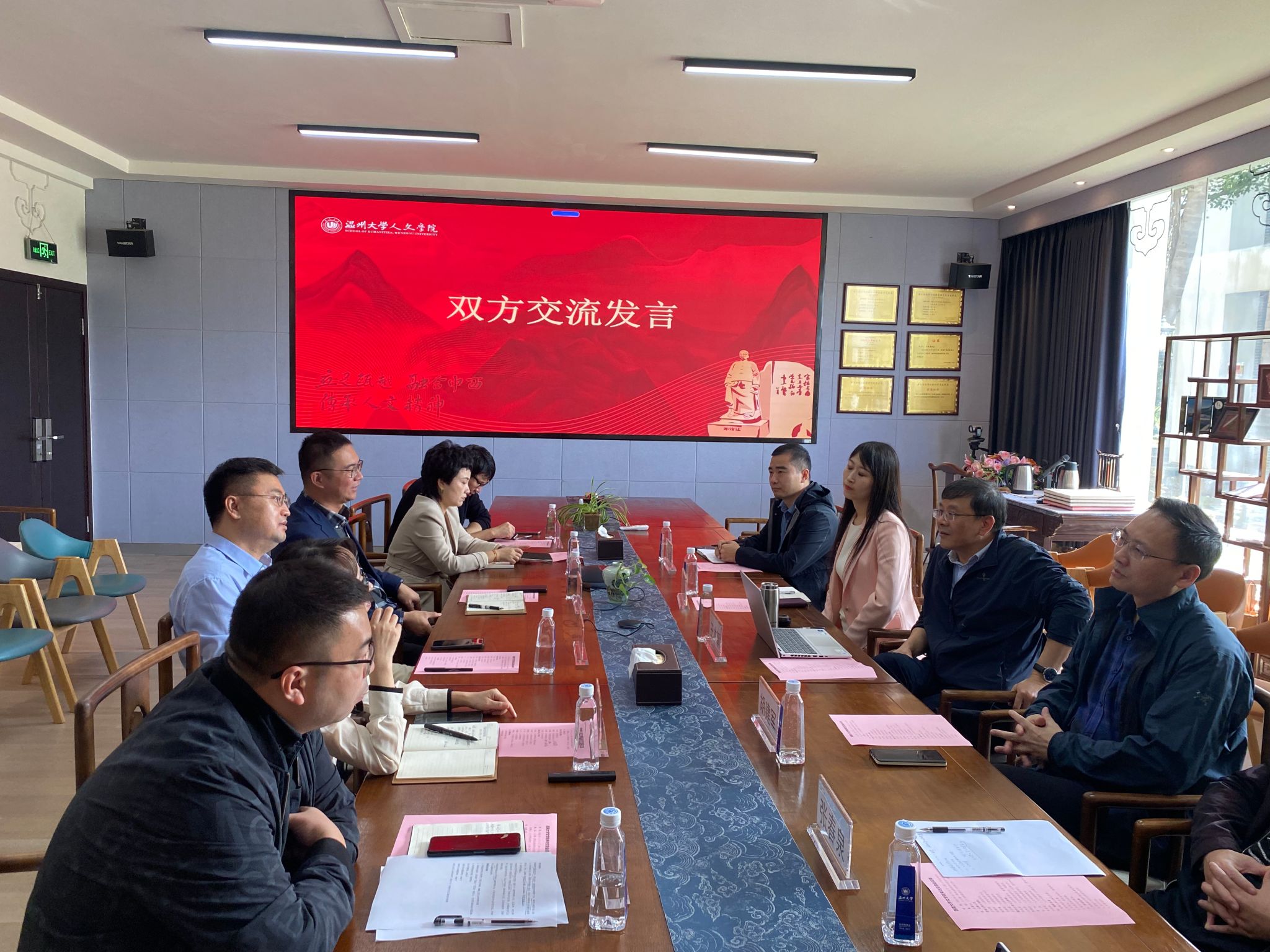 11月11日上午,西南大学文学院王本朝院长一行来德赢官网访问交流。院长兼图书馆馆长孙良好、院党委书记江秀景、副院长陈源源、院党委副书记黄玮,副院长张真、陈鸿超及学工办副主任刘炳林参加了交流座谈。