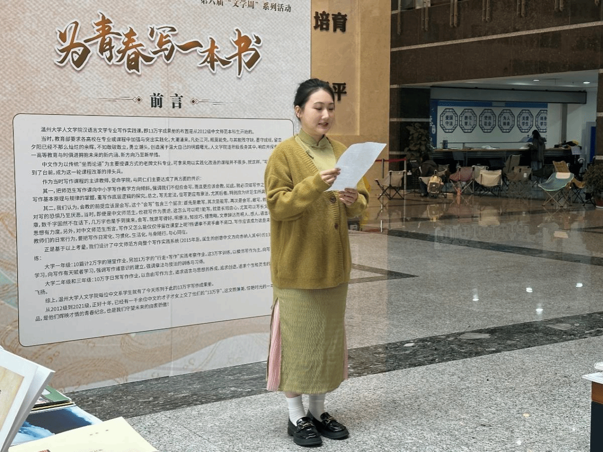 21创意中文沈安琪同学作为学生代表发言。沈安琪同学真挚而富有感染力的分享,让在场的每一个人深切感受到了文学对于年轻一代的深远影响。她的故事,无疑是德赢ac米兰官方合作vwin文学教育成果的一个缩影,也为大家继续前行提供了强大的力量,真正体现了本次展览“为青春写一本书”的主题。