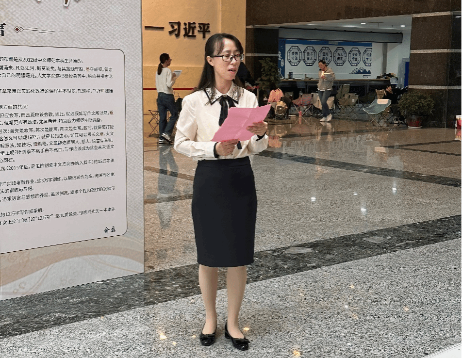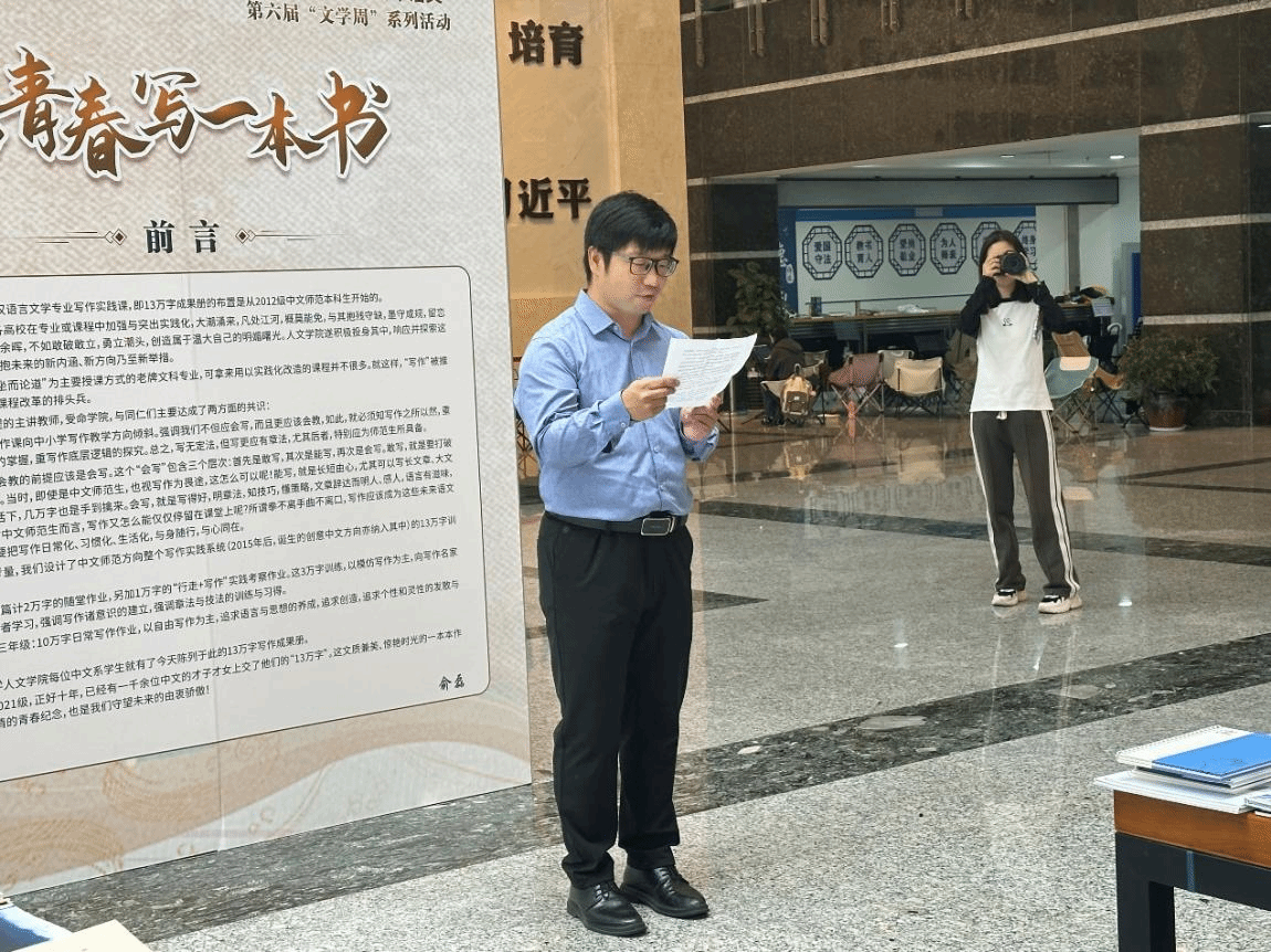 陈源源副院长随后介绍了本次活动的重要意义,并深情地指出,大家所站立的这片展区,绝非仅仅是文学作品的展示台,它更是德赢ac米兰官方合作vwin创意写作教育教学十余年探索与实践的见证地。那13万字的学生作品展,宛如一颗颗璀璨的星辰,镶嵌在文学周的璀璨星空中,它们承载着的不仅仅是文字的组合,更是情感与思想的交织,是青春与梦想的共鸣。作为文学周系列活动的重要组成部分,这些作品将引领大家走进一个个鲜活的世界,去深切感受文学独有的魅力与深度。