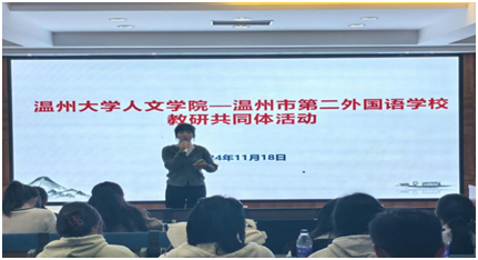 2024年11月18日,德赢ac米兰官方合作vwin汉语言文学(师范)专业在温州市第二外国语学校的教育见习见面会在二外G楼二阶活动室成功举办。