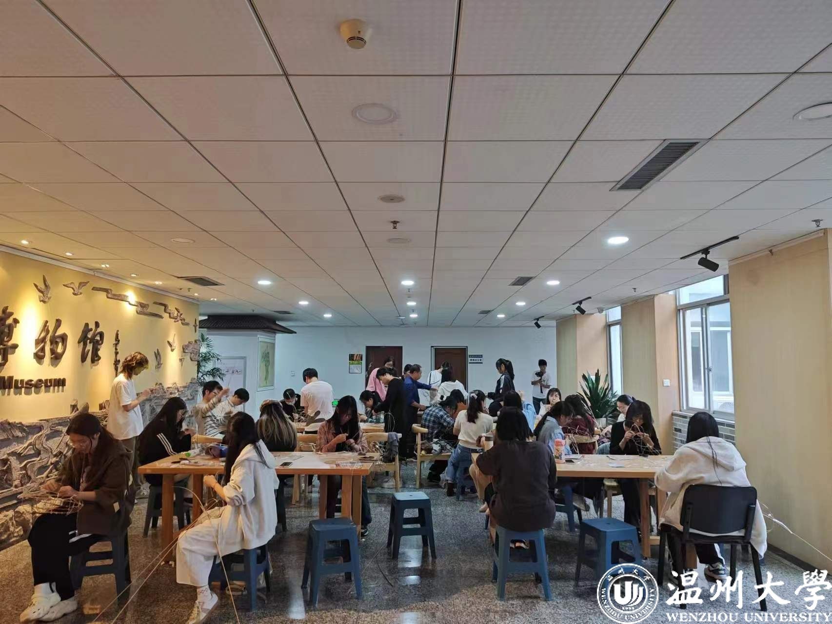 以体验实践为抓手,推进非遗文化传播。一是通过社会实践,增加文化理解。2024年7月,温州民俗博物馆实践队主要致力于文物知识整理及考察走访,整理了关于民俗知识的近万字内容。深入瑞安、鹿城等地,开展相关的田野调查,进一步增加了学生对于地方非遗知识的了解。二是通过课程研学,提升文化认同。温州民俗博物馆作为校级大学生劳动教育实践基地,开发了非遗普及+体验的劳动实践课程。2024年10-11月,《手造温州——温州传统手工艺制作》课程邀请了省级非遗百鸟灯制作技艺代表性传承人王大普老师进校,为学生讲解百鸟灯的历史渊源、文化内涵、工艺流程,指导学生手把手进行灯彩制作,利用课堂表现+制作过程+手造记录+创意思考等相结合的方式,增进对于非遗文化的理解认同。