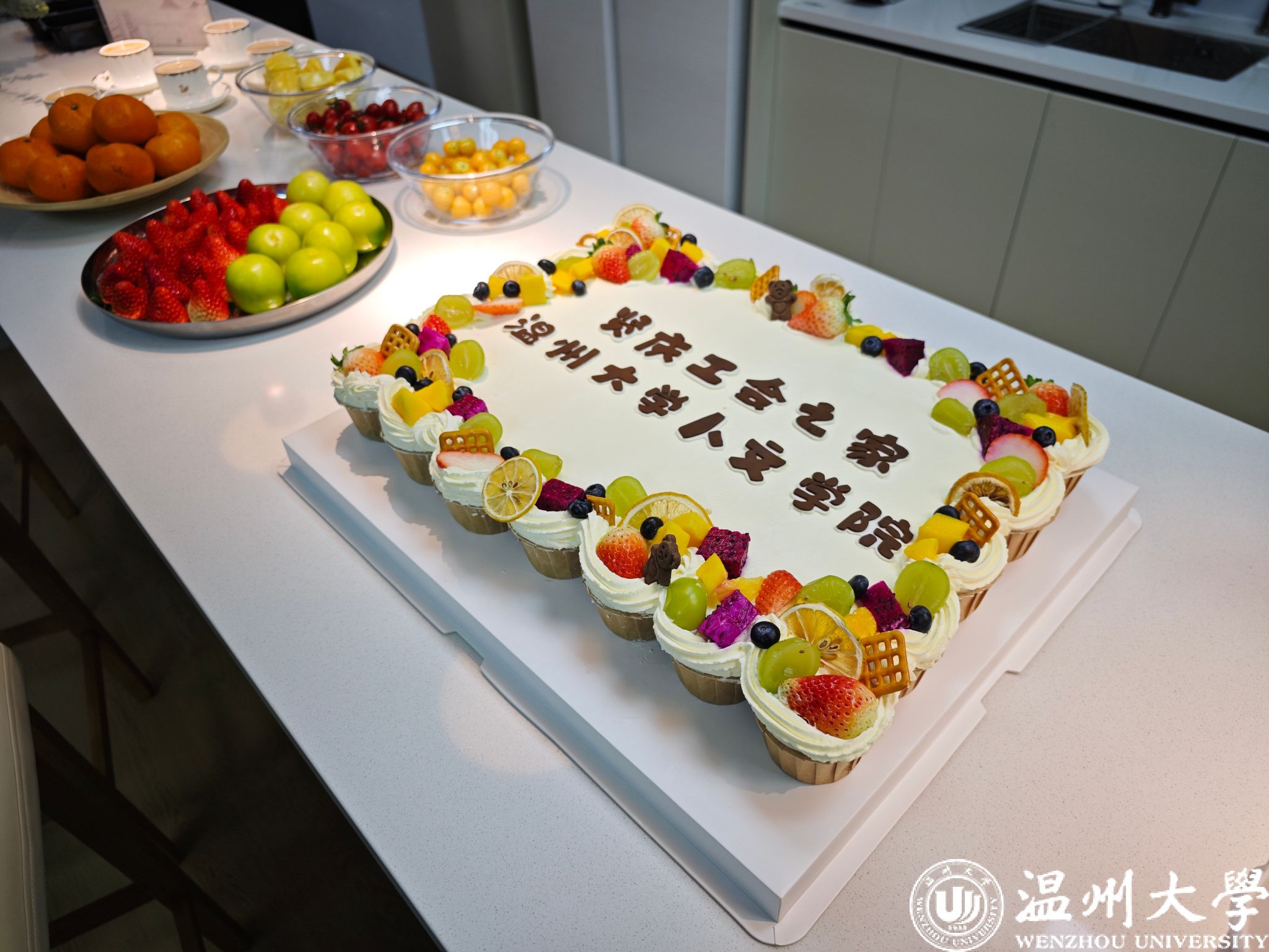 揭牌仪式在轻松愉悦的氛围中进行。随着工会小家牌匾的缓缓揭开,现场响起热烈的掌声。随后,教师们纷纷移步茶歇区,开启了一场温馨又治愈的美食时光。精致独特的蛋糕和热饮让老师们食欲大开,大家围站在一起谈笑风生。