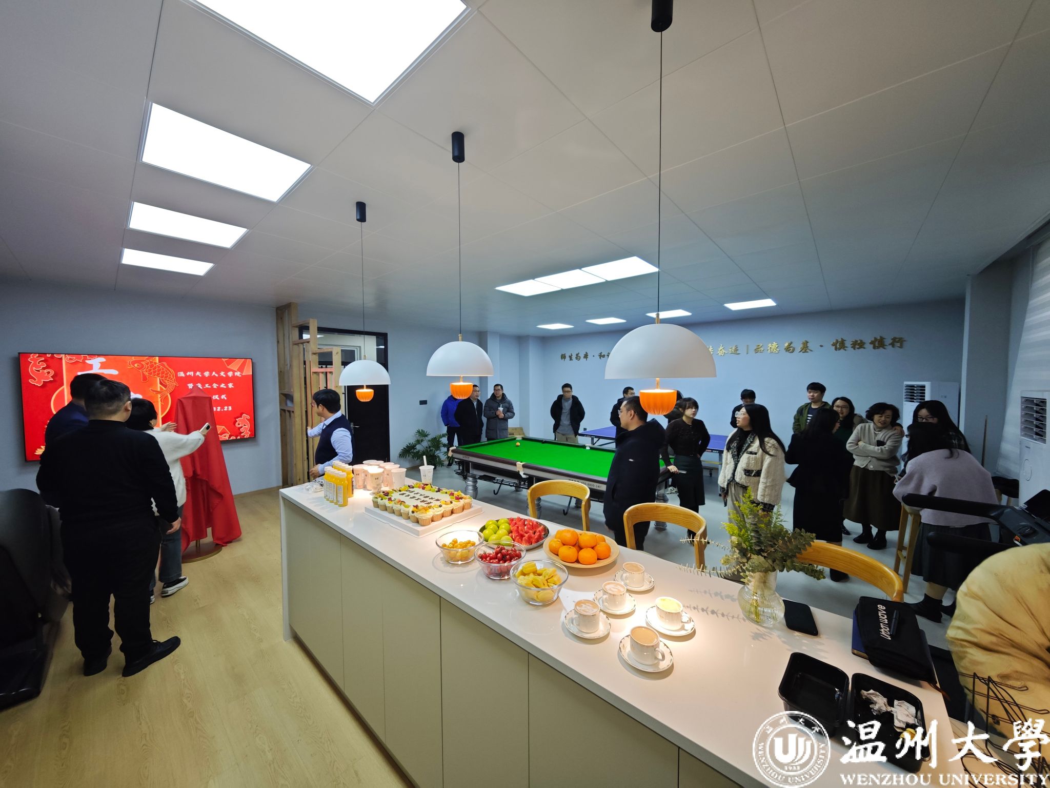 12月23日下午,德赢ac米兰官方合作vwin新工会小家正式揭牌落成。学院领导与教师代表齐聚人文楼104工会小家,共同见证这一充满温情与人文关怀的时刻。这个精心打造的工会小家,以其简约温馨的设计与贴心完善的功能,成为学院教职工交流与放松的理想场所。