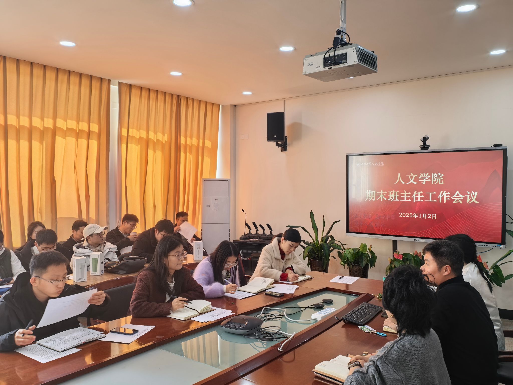 2025年1月2日下午,德赢官网在人文楼213会议室召开了期末班主任工作会议。校心理健康教育中心主任余如英,院党委副书记黄玮、学工办全体辅导员、21-24级全体班主任参加。会议由刘炳林主持。