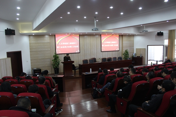 之后学院工会主席陈心浩同志做了工会工作报告和经费使用情况说明。