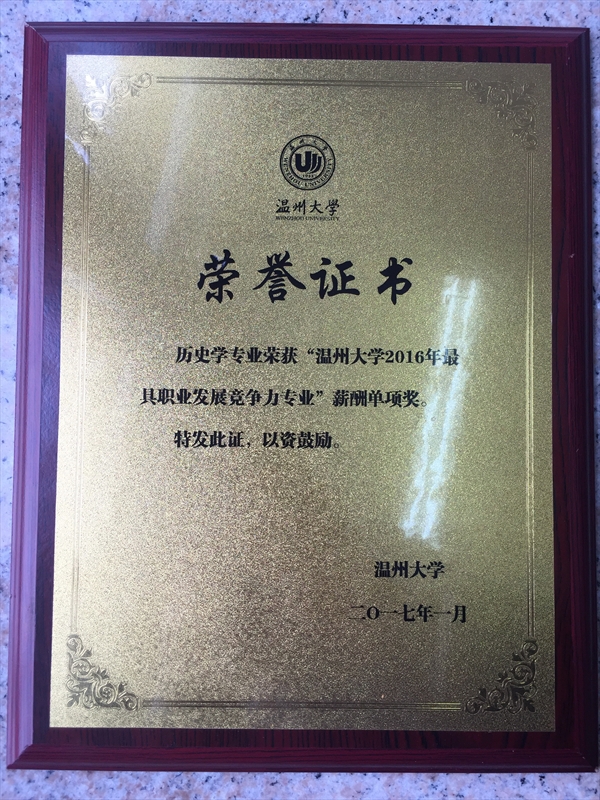 德赢官网历史学专业荣获“德赢ac米兰官方合作vwin2016年最具职业发展竞争力专业”薪酬单项奖称号,奖励五万元。