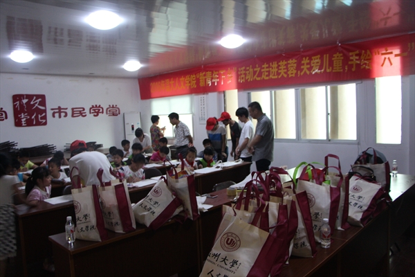 2016年6月1日德赢ac米兰官方合作vwin思源青年志愿者协会在辅导员邢芳芳老师的带领下来到乐清市芙蓉镇小芙社区,给当地的二十位孩子带来丰富多彩的活动,通过绘制环保袋、水果拼盘筑就别样的“六一梦”,我们陪他们欢度六一。
