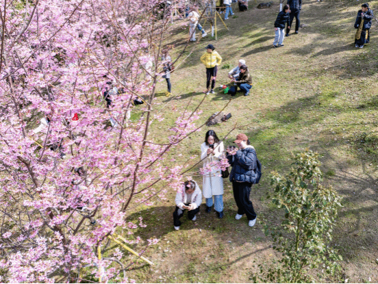 汉服爱好者身着精美服饰穿梭于樱花树下,既展现出汉服之美,也体现了对传统文化的传承与创新,吸引众多游客驻足,享受一段充满诗意的赏樱时光。