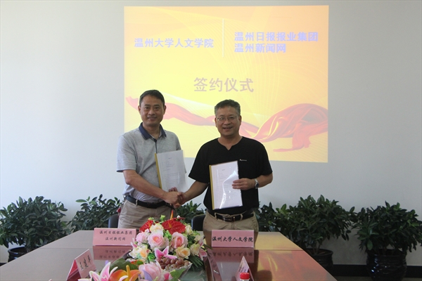 2016年7月4日下午3点半,德赢官网和温州日报报业集团温州新闻网在人文楼213会议室顺利举行。德赢ac米兰官方合作vwin院长蔡贻象、德赢ac米兰官方合作vwin党总支副书记朱启鑫、温州日报报业集团副社长、温州网总编辑、《瓯雅》总编辑张春校、《瓯雅》主编王宏、《瓯雅》市场运营负责人方建武、“广雅”团队指导老师洪之渊、金凡平、陈心浩出席本次活动。