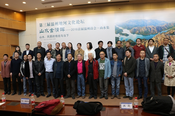 主办方瓯海区文化广电新闻出版局局长叶展发表讲话表示这既是一次高规格的学术研讨,更是对瓯海文化工作的鞭策和指导,希望在场的各位作家、诗人能够以山水诗这个独特的载体,尽情创作更多与千年塘河为主题的精品佳作,让塘河文化在当下闪耀光芒。瓯海塘河保护管理委员会主任邱忠夫指出:“水是城之魂。然而高速度的经济发展使我们的水环境遭到了严重破坏,在保护的同时尤为迫切地需要诗人的创作,深入浅出地挖掘其中的文化,唤起市民对塘河的回忆。”紧接着,德赢ac米兰官方合作vwin孙良好教授的致辞说:“大罗山和塘河就是一部山水雅集。”温州不仅是商业的,更是诗性的,山水和诗交相辉映,这是最好的境界,山水温州一定能激发出诗人们的灵感。诗人代表迟凌云追忆谢灵运的山水诗创作,指出人与自然、山与水一直是诗人创作诗歌的主题,希望能写出这个时代的山水诗佳作,为温州的山水增色。
