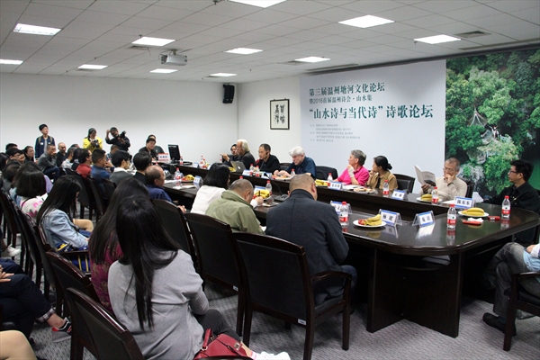 接下来,其余的诗人都纷纷发表了精彩的言说,表达自己对于山水诗,对于现代诗歌与传统诗歌等等问题的一些见解和看法。最后孙良好教授作了一个总结发言,希望通过这一次的温州之行,或者在离开温州后,在座的诗人们能够为我们留下一些可以欣赏,可以思考的优秀山水诗篇。同时孙教授也发表了自己的见解。诗是分古今的,山水也有古今之分。古今山水诗各有千秋,但山水却是今不如古。最后讲了自己的诗歌理念,山水还是还是我们心中的诗,好的诗还是我们心中的山水。即使是残山暗水,也还是我们心中的诗。当代山水也可以寄托我们的山水情缘梦,但更多应该写出我们心中的痛。
