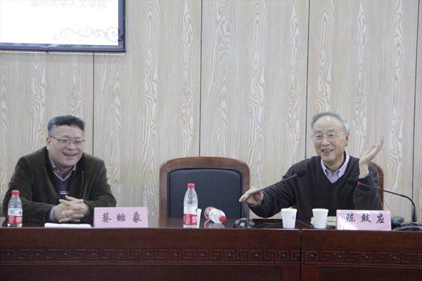 2016年1月5日上午10点,德赢官网邀请了北京大学道家研究中心主任、道学泰斗陈鼓应先生在人文楼203学术报告厅为德赢官网师生作了一场名为《异质文化的对话》的讲座。本次讲座由德赢ac米兰官方合作vwin院长蔡贻象教授主持。