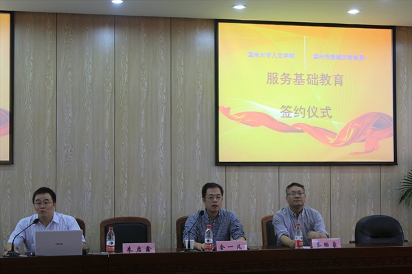 2015年9月23日14点,德赢ac米兰官方合作vwin与温州市鹿城区教育局“服务基础教育”签约仪式人文楼院203教室顺利举行。德赢ac米兰官方合作vwin院长蔡贻象、鹿城区教育局局长全一凡、德赢ac米兰官方合作vwin党总支副书记朱启鑫、温州中小学校长以及园长等参加了这次仪式。 本次活动主要分为签约仪式、启动仪式、颁发聘书以及院长讲话四个环节。在欢快的音乐中,蔡贻象院长和全一凡局长郑重地在文件上签字,交换文件并热情地握手。在启动仪式中,蔡院长与全局长将手触碰到水晶球上的那一刻,开启了德赢ac米兰官方合作vwin与鹿城区教育局全面合作的序幕。全场响起了热烈的掌声。随后蔡院长为全一凡局长颁发聘书,聘任全局长为德赢ac米兰官方合作vwin兼职研究员。最后蔡院长怀着激动的心情表达了对于本次合作的美好祝愿以及期望。