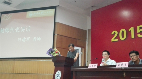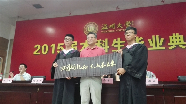典礼从欣赏短片《在温大人文的日子》开始,营造了浓浓的毕业情。伴随全体奏唱国歌,典礼开始了庄严的时刻。蔡贻象院长首先致辞,他表达对同学们顺利毕业的祝贺以及未来工作生活的美好祝愿,他说,毕业的性质更多时候是叙事小说和戏剧剧本,充满着无奈、绝然和必须的面对。他也希望同学们以后能经常回学校看看。优秀毕业生潘立川同学代表全体同学表达了对大学生活的留恋和对德赢ac米兰官方合作vwin的惜别之情,也感谢学院提供各种平台,让同学们收获了专业的知识、处事的智慧和生活的热情。叶建军老师则代表毕业班班主任发言,他祝福学生们走上工作岗位后一切顺利,开启人生精彩新篇章。典礼上,吴静书记宣读了德赢官网省优、校优、院优荣誉获得者名单、考研优秀奖名单、毕业论文优秀奖名单,并为毕业生代表颁发证书。最后,学院领导为各班级校友联络员颁发了聘书。典礼上学院领导为同学们准备了特制礼物,各毕业班也向母校赠送了感恩纪念品,学生代表为老师献花,师生情谊在双向互动的过程中不断升温。