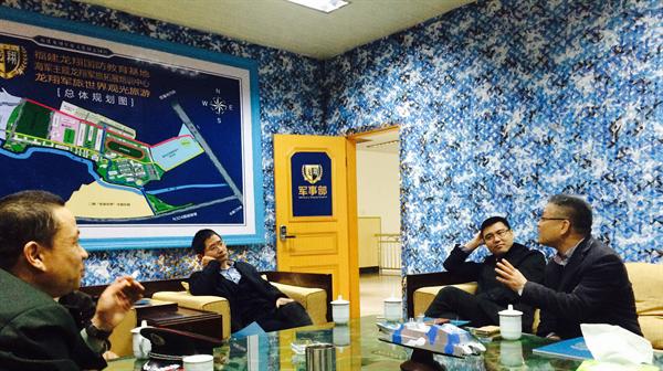 在与创意园现场对接讨论环节,周董事长阐述了进一步完善龙翔军旅创意园的构想,并就国防教育基地、军旅特色食宿区、军旅户外体验区等园区功能区的创意提升方面以及发展军事观光旅游等问题,提出了许多研讨建议。