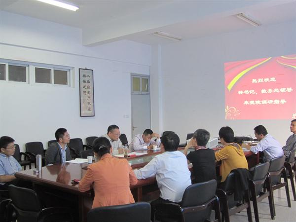 10月17日下午,校党委副书记林娟娟教授带队,教务处处长施晓秋、副处长王佑镁、周荣、蔡桂平,教师教育发展中心林彩芬科长一行6人莅临德赢官网调研并指导工作。学院蔡贻象院长、刘建国副院长、各专业负责人、教学科老师一同参加了调研座谈会。