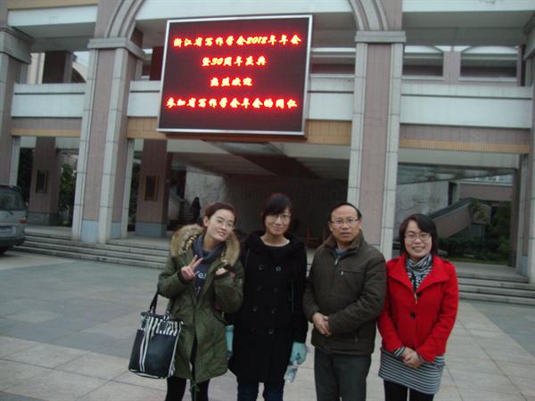 2012年12月22日,浙江省写作学会2012年年会暨成立30周年庆典在浙江省杭州高级中学隆重召开。开幕式由浙江省写作学会秘书长浙大中文系陈建新教授主持,本次会议主要围绕浙江省写作学会30周年庆典、高校写作教学的现状和问题探讨、中学作文教学课堂观摩与研讨三大主题展开。德赢官网语文课程与教学论研究生在彭小明、陈小碧老师的带领下参加了此次会议。会上,彭小明老师当选浙江省写作学会副会长。此次大会共分为六个板块:开幕式、分组活动、教学点评、高考作文分析、闭幕式和论文颁奖典礼。开幕式上,与会女教师为30年来为省写作学会做出杰出贡献的老前辈送上了鲜花,对他们的努力表示衷心的感谢。在分组活动中,中学组在杭州高级中学扇形教室分别聆听了杭州源清中学潘慧群老师的《时事评论》、宁波效实中学张悦老师的《文学写作》和杭州高级中学高利老师的《拒绝伪细节》三节公开课。下午在杭高报告厅内,由浙江省语文教研员、特级教师胡勤老师对上午三节课进行点评,胡老师评点上午公开课的教师能够用幽默生动的语言、精致的教学课件、恰到好处的把握好课堂节奏,拓展了知识容量,培养了学生的人文素养,值得广大教师借鉴。随后,浙大中文系陈建新教授就高考作文理念、高考作文阅卷代表性问题两方面对2012年高考作文进行了剖析。大学组在杭州高级中学会议室开会讨论,我校硕士生导师彭小明作了《高校写作教学的现状、问题及其对策》的主题发言,并介绍了我省第一个写作学硕士点——德赢ac米兰官方合作vwin“写作理论与实践”硕士点申报过程和基本情况。硕士点成功的申报预示《写作学》学科发展的未来,增强的高校教师对《写作学》学科发展的信心。