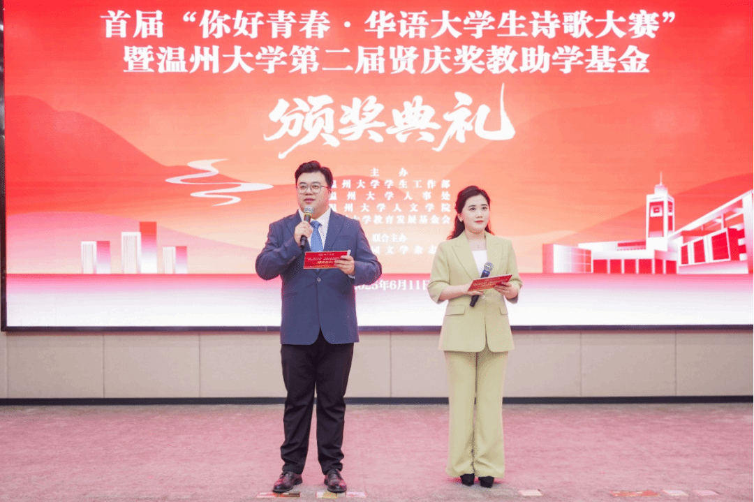 首届“你好青春·华语大学生诗歌大赛”暨德赢ac米兰官方合作vwin第二届贤庆奖教助学基金颁奖典礼圆满举行