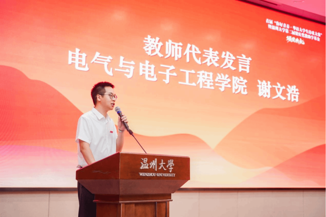 2025年度“贤庆青年新锐计划”人才奖的颁发成为亮点,获奖教师分享在各自领域取得的卓越成就,更是德赢ac米兰官方合作vwin教书育人的榜样。教师代表电气与电子工程学院谢文浩副教授表示将不负众望,以更加饱满的热情、更加严谨的态度,在教学、育人、科研和服务地方的道路上砥砺前行,用实际行动回馈学校、企业和社会的信任与支持,为学校、学院的发展贡献自己更大的力量!