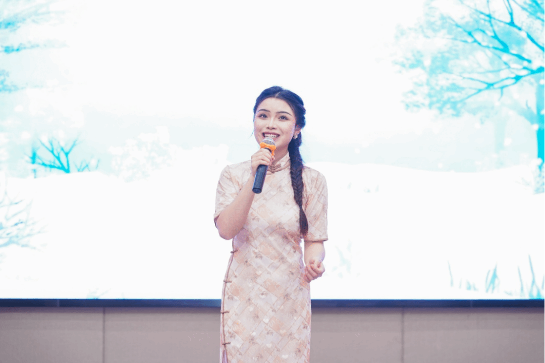 典礼开始前,首届“你好青春·华语大学生诗歌大赛”获奖作品节选《冬与山》及经典作品《等待》《春天遂想起》的表演者以声为笔,以情为墨,献上了精彩的朗诵节目,将冬的凛冽与山的沉稳、等待的执着与春天的温暖生动呈现,展现当代大学生的文学创造力与青春活力,获得参会校友师生的高度好评。