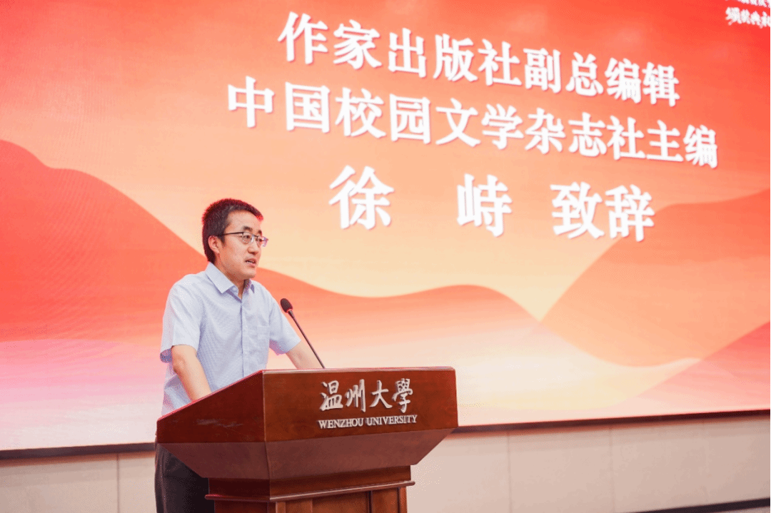 作家出版社副总编辑、《中国校园文学》主编徐峙在致辞中表示,首届“你好青春·华语大学生诗歌大赛”由中国校园文学杂志社和德赢ac米兰官方合作vwin联合主办,旨在为大学生提供创作平台,推动校园文学繁荣。并对获奖同学、合作院校及评审专家表示感谢,期待未来与高校深化合作,鼓励更多青年坚持诗歌创作,让青春在诗意中绽放。