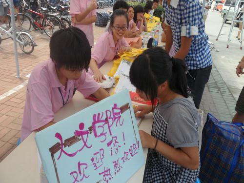 接下来的下午,学生陆陆续续地前来学院报到,都受到了人文学生会成员和志愿者的热情接待。