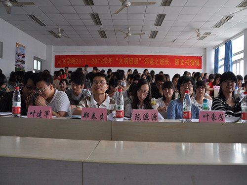 5月23日下午2点,德赢ac米兰官方合作vwin2011-2012学年第二学期"文明班级"评比之班长、团支书演说活动在德赢ac米兰官方合作vwin302教室顺利举行。学院辅导员麻法全老师、叶豪芳老师和参赛班级的班主任作为嘉宾评委出席了本次活动,院学生会各部长也作为评委出席。本次活动由学生会组织部部长林武主持,参加现场演说比赛的班级分别有10中本一班、10历本班、11中本一班、11中本二班和11中本三班。
