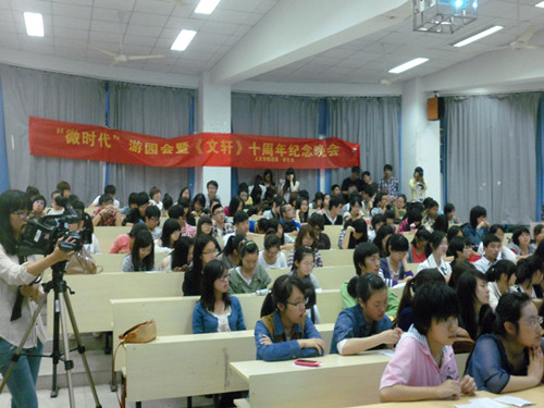 6点半一到,主持人戚丽珊闪亮登场,全场掌声四起。主持人隆重介绍了第十期《文轩》以及《文轩》作为校园仅存的纯文学的价值意义。