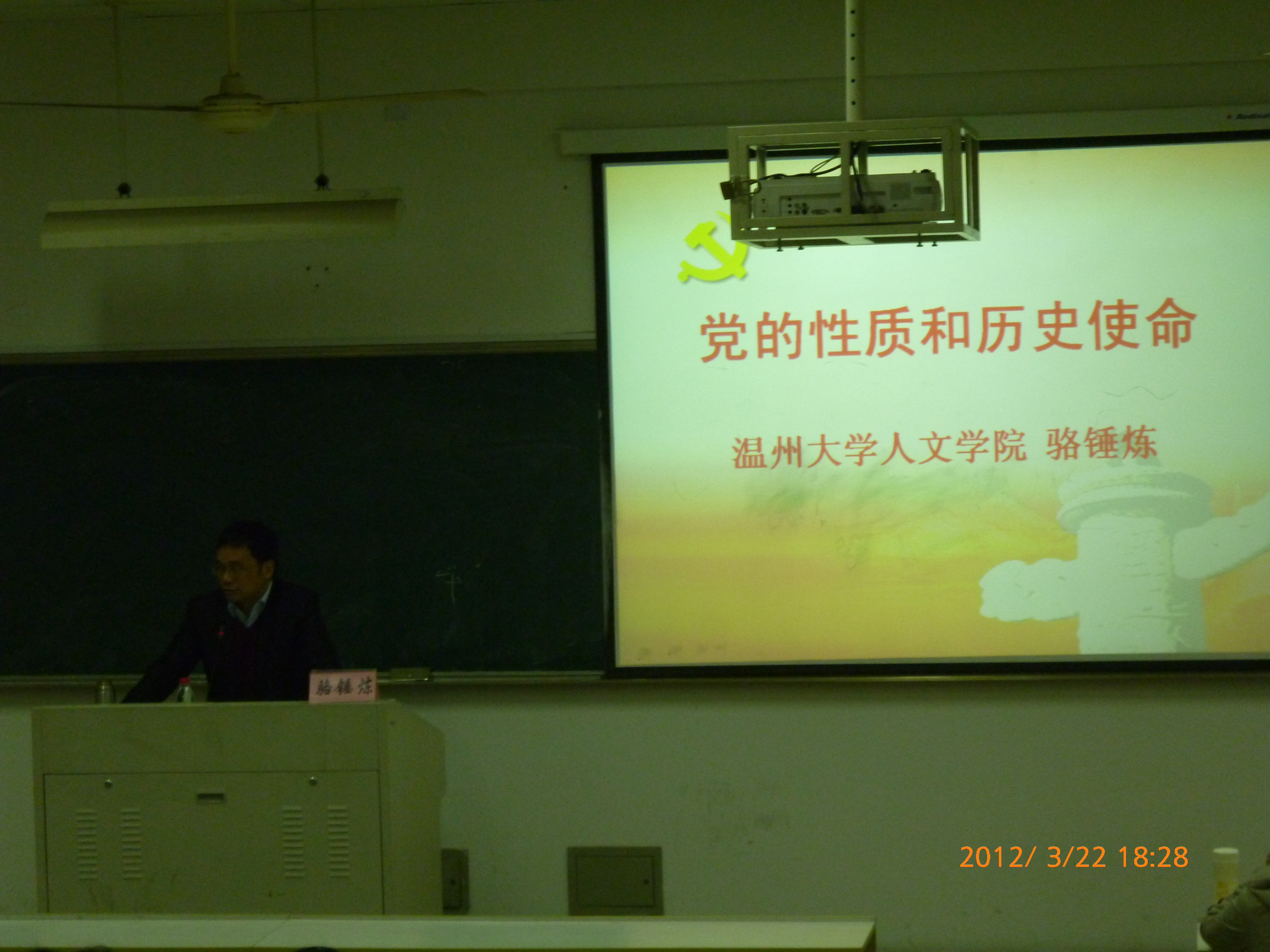 2012年3月22日晚18时30分,德赢ac米兰官方合作vwin第十五期党校培训第二课在1-301开课。德赢ac米兰官方合作vwin党总支副书记骆锤炼老师作为主讲人出席了本次党课。77名党校的学员和党员之家工作人员积极主动地前来聆听讲座。