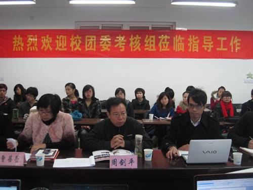 2011年12月15日上午,由校团委书记杨立淮老师带领的考评团来到德赢ac米兰官方合作vwin进行团委考核。德赢ac米兰官方合作vwin党总支书记周剑平老师,学生科副科长曾蓓蕾老师和学生辅导员麻法全老师出席本次考核。此外,主席团各成员和各个中心的部长级副部长也参加了本次考核。