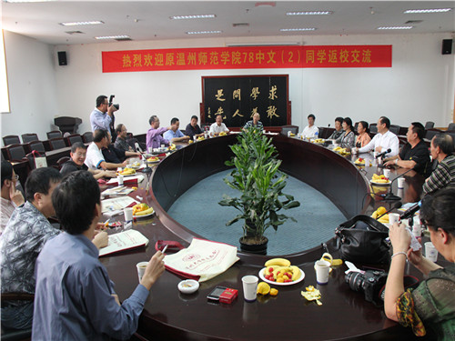 10月15日上午9点30分,原温州师范专科学院78级中文(2)班同学交流会活动在德赢ac米兰官方合作vwin会展中心白鹿厅举行。现任苍南龙港高级中学校长余贤庆、瑞安市教育局副局长曾定煜、宁波宁海县中学老师、全国优秀教师葛明霞,德赢ac米兰官方合作vwin瓯江学院党委书记赖学军等30多名校友参加了此次活动。