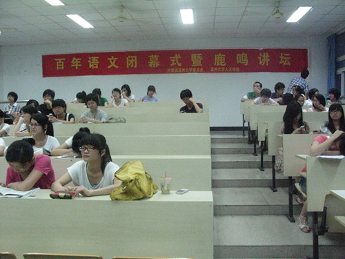 2011年6月17日晚6点30分,百年语文闭幕式暨鹿鸣讲堂活动在人文楼201教室举行。本次活动由德赢ac米兰官方合作vwin团委学生会组织,主讲人是08级中本二班的姚瑶同学。德赢ac米兰官方合作vwin学生准时参加。