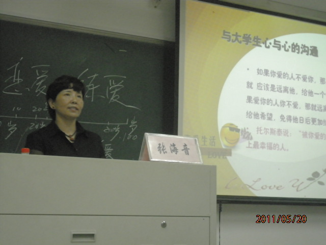 5月20日晚6点半“与大学生谈谈恋爱与婚姻”心理健康专题讲座在德赢ac米兰官方合作vwin202教室准时举行,主讲人为德赢ac米兰官方合作vwin心理健康教育中心负责人张海音老师,同学们积极参加,接受这份“关于爱情的嘱托”。