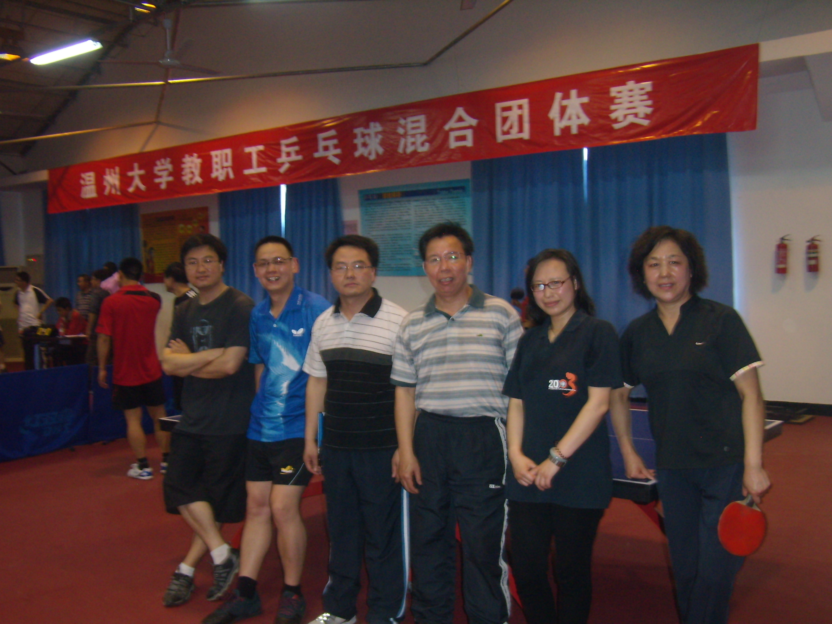 5月7-8日,2011年德赢ac米兰官方合作vwin教工乒乓球混合团体比赛在学院路校区的乒乓球馆举行。共有来自20只代表队的近两百名选手参加比赛。德赢官网乒乓球队由周剑平书记、丁治民院长和孙良好、陈勇、顾维杰、李冰等老师组成。在小组赛中,德赢官网代表队先后以3:1战胜党群科研联队和化材学院,3:2力克小组种子对后勤集团,2:3负于上届冠军教育学院,以小组第二晋级。在第二阶段的1/4淘汰赛中,德赢官网代表队与A组第一团学图书馆联队打满5盘,最终以3:2力挫对手,晋级四强。虽然在半决赛中1:3负于最终获得冠军的成教学院,季军之战中再以2:3负于教育学院,但第4名已是德赢官网教工乒乓球队取得的历史佳绩。
