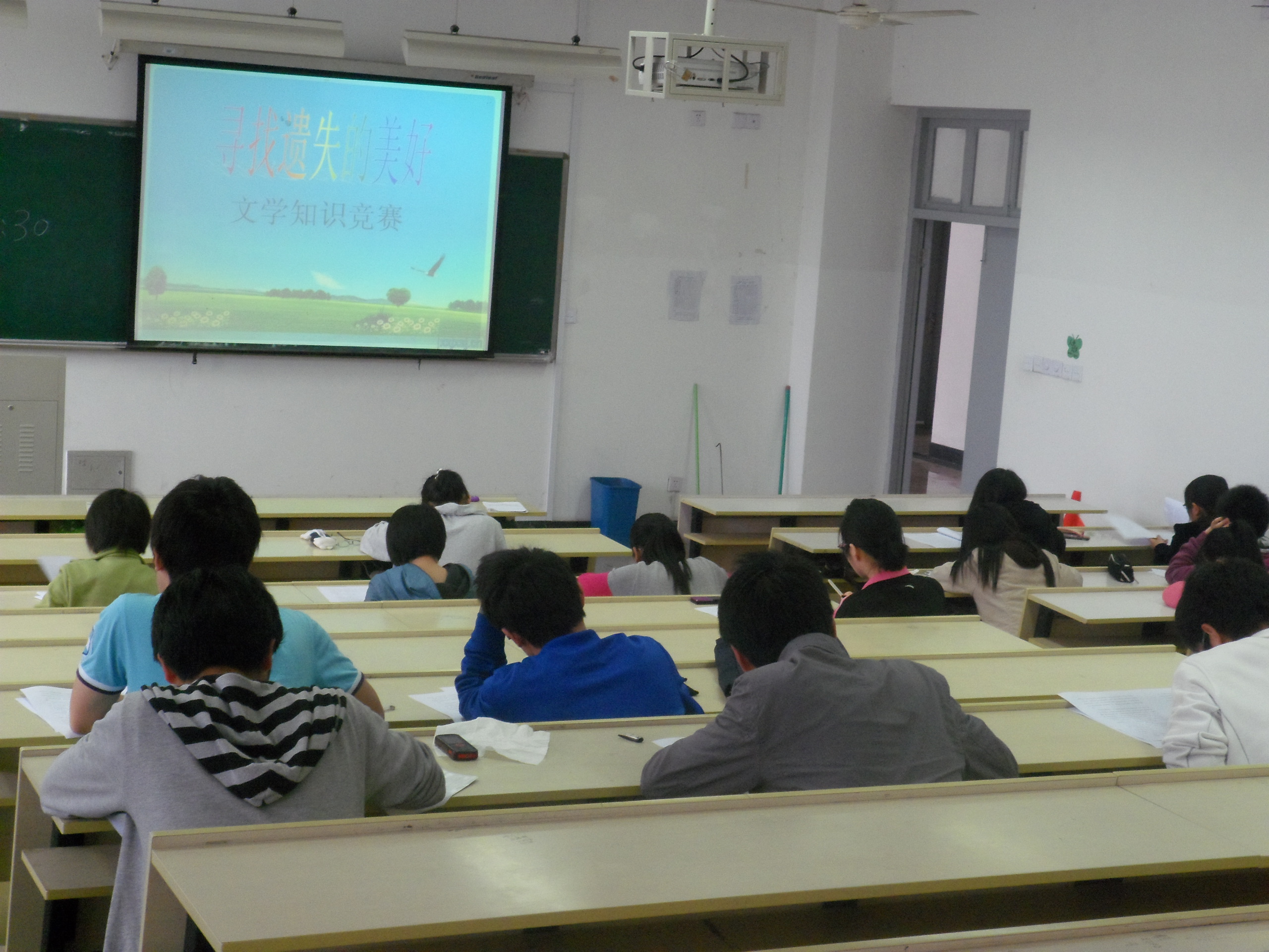 此次竞赛采取现场答卷的方式,比赛时间为2个小时。开始前首先由监考人员宣布考规考纪和答题的一些注意事项,随后进行试卷分发,每位同学拿到试卷后便开始了紧张的答题。这次“文学文化知识竞赛”是寻找“遗失的美好”大型溯源文化活动的一部分,为了配合此次溯源活动“弘扬校园文学文化氛围,丰富大学生精神文化世界,培养广大现代大学生对优秀传统文化的兴趣,激发爱国热情”的主题,竞赛题目的设计紧紧围绕于此分为“华夏胜景”“西学东渐”“炫色迷雾”“盛世唐宋”“洞人心扉”“天涯共此时”等六部分,主要考察同学们对传统文化的了解情况,比赛现场同学们都认真作答,争取取得好成绩。下午3点30分,比赛顺利结束,同学们有序退场。