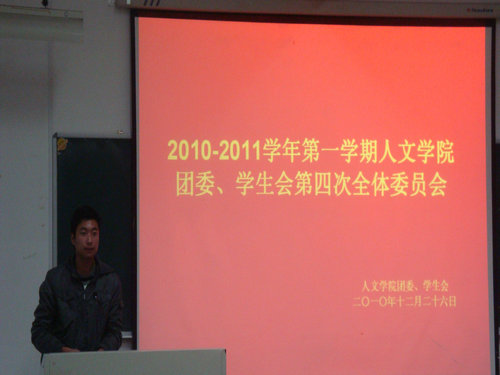 12月26日晚6点半,2010-2011学年第一学期德赢ac米兰官方合作vwin团委、学生会第四次全体委员会在1-101教室准时举行。德赢ac米兰官方合作vwin辅导员麻法全与院团委、学生会全体成员出席了本次会议。