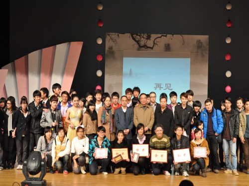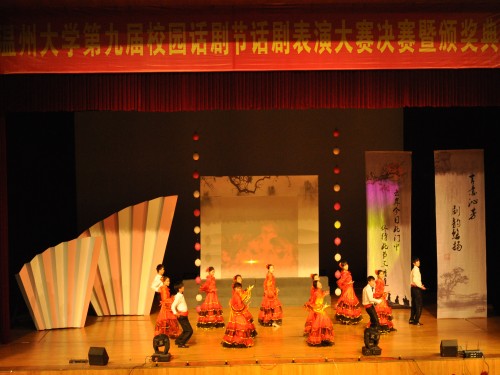 在由德赢ac米兰官方合作vwin艺术团带来的舞蹈《西班牙之火》中,本次大赛拉开了帷幕。首先,丁治民老师在一片掌声中致开幕辞。随后,比赛正式开始,由农历剧社带来的《人质》和《雷雨》、以及由建筑与土木工程学院带来的《装在套子里的公寓》无不精彩纷呈,高潮迭起,搏得台下阵阵掌声。紧接着,大赛组委会颁出了本次大赛的话剧表演大赛优秀奖、话剧潜力之星及最佳组织奖,由校团书记杨立淮老师及德赢ac米兰官方合作vwin学生科副科长曾蓓蕾老师颁奖。接下来上演的是德赢ac米兰官方合作vwin带来的古典爱情悲剧《绝恋》和《霸王别姬》,以及教师教育学院叔同话剧社带来的《沦陷》。其后,由主持人宣布了话剧节LOGO设计大赛及原创剧本编写大赛的获奖名单,并由校团委曾国仕和计融老师为获奖者颁奖。三位德赢ac米兰官方合作vwin校园十佳歌手为在场观众倾情献唱。大赛评委周乔龙老师和严路明老师先后对本次话剧节进行了点评并予以高度肯定。最后,在所有人关注的目光中,德赢ac米兰官方合作vwin党总支副书记骆锤炼老师宣布了大赛最佳男女主角、男女配角及最佳导演的名单并为其颁奖。农历剧社的《雷雨》傲然折桂,德赢ac米兰官方合作vwin10广告本的作品《霸王别姬》和教师教育学院的作品《沦陷》获得银奖,其余三个话剧获得铜奖,由德赢ac米兰官方合作vwin党总支书记周剑平老师为获奖剧组颁奖,比赛至此圆满结束。