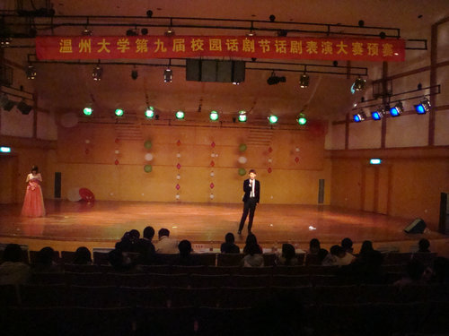 12月4日上午8点,德赢ac米兰官方合作vwin第九届校园话剧节表演大赛预赛在众人期待中正式拉开帷幕。本次活动由德赢ac米兰官方合作vwin主办,并荣幸邀请到著名戏剧导演严路明老师、德赢ac米兰官方合作vwin副教授苏勇强老师、人民网温州频道视频部导演周乔龙先生担任此次预赛评委。