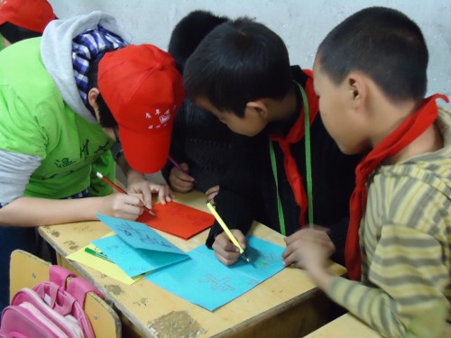 丁岙小学是一所民工子弟学校,有许多留守儿童。延着感恩节的话题,德赢ac米兰官方合作vwin志愿者决定做关于感恩的活动--教小朋友们为父母做贺卡,送祝福。中午时分,各学院志愿者们与C区集合,一同前往丁岙。去丁岙的一路上可谓艰辛,由于路途较远,交通状况较差,志愿者们经过较长时间颠簸才到达目的地。但一到学校,看到可爱的乖巧的孩子们,志愿者们便疲乏全无,立刻开展起活动。活动伊始,志愿者们先做好了准备工作:贴海报、分组、发卡纸等,一切都有序的进行。在教小朋友做贺卡的过程中,志愿者们耐心而热情,边与小朋友聊,边协助小朋友们做,可谓其乐融融、相亲相爱。小朋友们之间也能互相帮助,传借工具、帮剪纸片、出主意......各位小朋友似乎都想把送给父母的贺卡做成世界上最漂亮的。真的是用心在制作,相信孩子父母看到会很感动的。