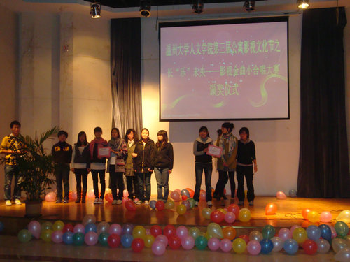 11月21日6点,德赢ac米兰官方合作vwin第三届公寓影视文化节之“长乐未央”影视金曲小合唱于大学生活动中心多功能厅举行。德赢ac米兰官方合作vwin学生科副科长曾蓓蕾老师、原音乐学院学生会文娱部部长刘甫、德赢ac米兰官方合作vwin学生会副主席相孝锟担任比赛评委。辅导员麻法全老师、叶豪芳老师,德赢ac米兰官方合作vwin学生会副主席范骏、黄凤燕等出席该比赛。