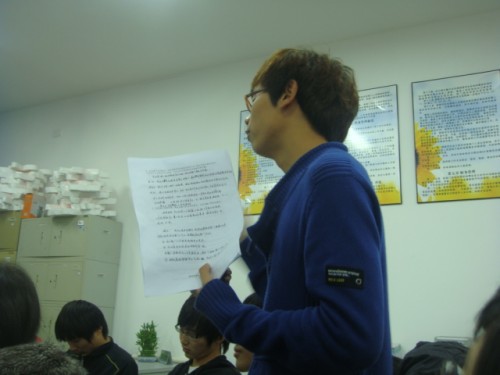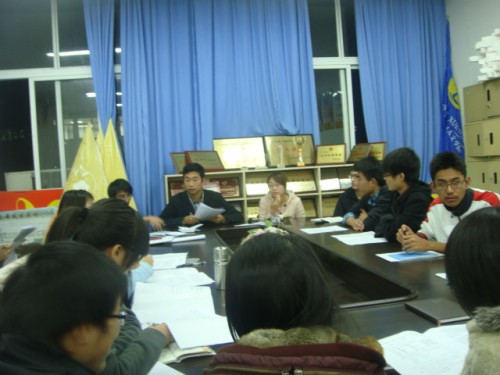 会议伊始,主席团先对之前的团委学生会干部技能测试的情况进行了总结,并由此延伸至大一新成员两个月来的工作状况及“513人才培养工程”的实施方案细则。各位部长副部长各抒己见,向主席团提出自己对团学工作的一些具体问题的看法,其中不乏一些较为棘手和敏感的老问题。与会各位围绕这些问题展开激烈讨论,力图解决,其中不乏建设性较强的真知灼见,并在一些议题上初步形成了统一意见。会议的最后,主席团向与会干部宣布了几个近期工作的通知,并宣布散会。