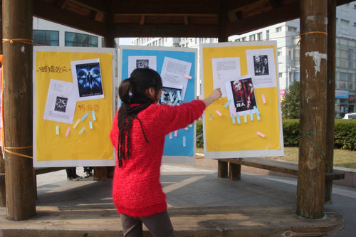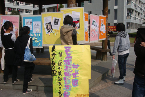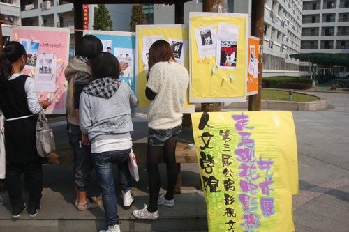中午,趁着这几天的好天气,公寓自立委员会在中心花园的凉亭里悬挂了如三傻大闹宝莱坞、盗梦空间、精武英雄陈真等等诸多今年流行的电影海报,供路过的同学投票,以选出最受同学们欢迎的影片。期间那些精美的海报引起了同学们的驻足观赏和兴奋讨论,并且纷纷为自己所喜爱的电影投上了一票。