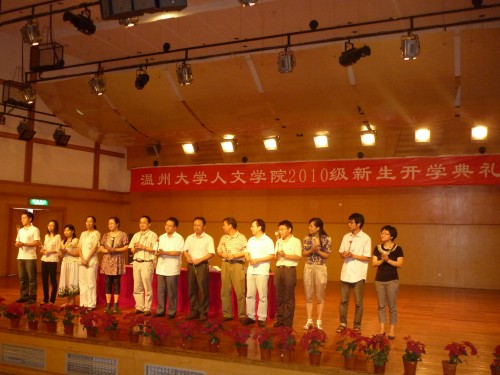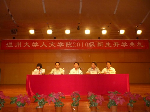 典礼在雄壮的国歌声中拉开帷幕,第一项内容为院长致辞。丁院长首先对新生们的到来表示热烈欢迎和衷心祝贺。随后,德赢ac米兰官方合作vwin彭小明教授作为教师代表发言,就大学里如何学习、如何成长成才等方面提出了中肯的建议和殷切的希望。随后,本科生代表钟刘超和研究生代表同小花同学分别发言,畅谈来到温大后的感受及今后在学习工作生活各方面的规划。最后,在教师节这样一个特殊的日子里,新生代表们还为到场的老师送上了鲜花,表达对老师辛勤耕耘的崇高敬意。开学典礼结束后,周剑平书记还为10级本科新生进行了校规校纪教育,让新生们全方位了解大学的学习和生活状态,明确各项规章制度,科学规划自己的大学生涯,树立远大的理想。