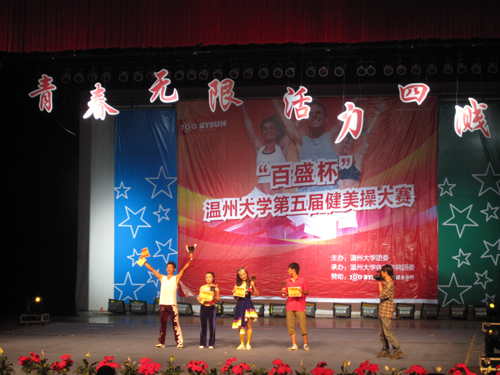 6月4日晚6点30分,“百盛杯”德赢ac米兰官方合作vwin第五届健美操大赛在大学生活动中心演艺厅举行。体育学院党总支书记杨志敏、百盛健身有限公司董事长张华政等领导出席。